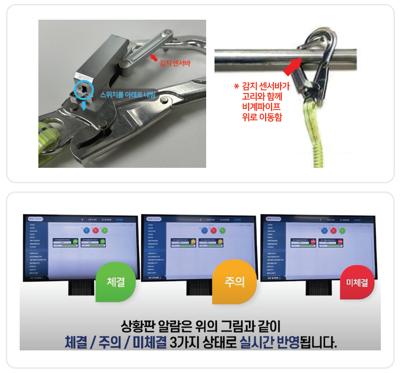 1. °³¿ä ±Ù·ÎÀÚ°¡ °í¼ÒÀÛ¾÷ ½Ã ¾ÈÀü°í¸®¸¦ ¹Ìü°áÇÒ °æ¿ì °æ°íÀ½ ¹ß»ý(½ºÇÇÄ¿). À̸¦ ÇöÀå°ü¸®ÀÚ¿¡°Ô ½º¸¶Æ®Æù°ú ¾ÈÀüÁ¾ÇÕ»óȲÆÇÀ¸·Î ¿ø°ÝÀü¼ÛÇÏ¿© ±Ù·ÎÀÚÀÇ Ãß¶ô¹æÁö¿ë ¾ÈÀü°í¸® º§Æ® Àǹ«Âø¿ë À¯µµ 2. ±â´É ¡á ±Ù·ÎÀÚ ¾ÈÀü´ë¿¡ ¾ÈÀü°í¸® °ÉÀÌ ¼¾¼ ºÎÂø, µà¾ó ¾ÈÀü°í¸® Àû¿ë °¡´É ¡á Ãß¶ôÀ§ÇèÁö¿ª¿¡ ¾ÈÀü°í¸® °ÉÀÌ È®ÀÎ¿ë ½ºÇÇÄ¿ ¹èÄ¡ ¡á ±Ù·ÎÀÚ°¡ ¸ö¿¡ ¾ÈÀü°í¸®¸¦ °É°í ´Ù´Ò ¶§ ÆòÁö¿¡¼´Â ¾ÈÀü°í¸® Âø¿ë ½ºÇÇÄ¿ ¾È³»°¡ ³ª¿ÀÁö ¾ÊÀ½ ¡á Ãß¶ôÀ§ÇèÁö¿ª¿¡ À̵¿ ¼³Ä¡µÈ ½ºÇÇÄ¿ ºÎ±Ù¿¡ Á¢±Ù½Ã ¾ÈÀü°í¸®¸¦ ¸ö¿¡¼ ¶¼¾î ¹åÁÙÀ̳ª ºÀ¿¡ °Éµµ·Ï ½ºÇÇÄ¿ À½¼º¾È³» ¡á ½º¸¶Æ®¾ÈÀü LTE¸ðµ© / °³ÀÎ ½º¸¶Æ®Æù ¿¬µ¿ÇüÀº º°µµÀÇ ½ºÇÇÄ¿ ÇÊ¿ä¾øÀÌ ±Ù·ÎÀÚ °³Àο¡°Ô¸¸ ¾ÈÀü°í¸® Âø¿ë °æ°í ¾Ë¸² ¡á ¿ø°Ý °ü¸®ÀÚ ½º¸¶Æ®Æù°ú »ç¹«½Ç/°¨µ¶½Ç »óȲÆÇTV¿¡ ½Ç½Ã°£À¸·Î Àü¼ÛÇÏ¿© ±Ù·ÎÀÚ ¾ÈÀüÈ®ÀÎ ½º¸¶Æ®¾ÈÀü LTE¸ðµ© / °³ÀÎ ½º¸¶Æ®Æù ¿¬µ¿Çü 3. Á¾·ù / ½ºÆå (1) ½º¸¶Æ® ¾ÈÀü°í¸® - µà¾ó ¾ÈÀü°í¸® Àû¿ë °¡´É ¡á ¾ç¹æÇâ ºí·çÅõ½º ¹æ½ÄÀ¸·Î Ãß¶ôÀ§ÇèÁö¿ª¿¡ ¼³Ä¡µÈ ½ºÇÇÄ¿¿Í ¿¬µ¿ ¡á ¾ÈÀü´ë³ª ÀÛ¾÷º¹¿¡ Å»ºÎÂø »ç¿ë ¡á °³ÀÎ ½º¸¶Æ®Æù ¿¬µ¿ Çʼö ¡á ¹æ¼ö/¹æÁø ±â´É ¡á ¼öÀºÀüÁö »ç¿ë – »ç¿ë½Ã°£ 4ÁÖ(ÀÏ 8½Ã°£±âÁØ) (2) ½º¸¶Æ® ¾ÈÀü°í¸® ¼¾¼ ¡á ±Ù·ÎÀÚ ½º¸¶Æ®Æù°ú ¿¬µ¿ ¡á °³ÀÎÁ¤º¸ È®ÀÎ ¹× ¾ÈÀü°í¸® ü°á À¯¹« Àü´Þ ¡á ÇöÀå ÀÛ¾÷ÀÚÀÇ ¾ÈÀü°í¸® ¹Ì ü°á ½Ã °í¸®¿¡ ºÎÀúÀ½ÀÌ ¹ß»ýÇÏ¿© ü°á ¿©ºÎ¸¦ ¾Ë¸² ¡á ±â¿ï±â/°¡¼Óµµ ¼¾¼ ¹× ºñÄÜ/Áß°è±â ÀÌ¿ë ¿ø°ÝÅë½Å ¡á ÇöÀå À§Çè»óȲ ±Ù·ÎÀÚ °³Àο¡°Ô ¹æ¼Û ¾Ë¸² ¡á °ü¸®ÀÚ¿¡°Ô ½Ç½Ã°£ ¾ÈÀü°í¸®Ã¼°á À¯¹« ¾Ë¸² ¡á ¹èÅ͸® »ç¿ë – AA¹èÅ͸® ¡á Á¦Ç°ÀÇ ±¸¼º 1. ½º¸¶Æ®¾ÈÀü°í¸® º»Ã¼ 1°³ 2. ¿¤¶ó½ºÆ¾ ÁÎÁÙ 1°³ (¹ÚÀ½Áú ó¸®) 3. Ä«¶óºñ³Ê 1°³ 4. AA ¹èÅ͸® 1°³ (2) ¾ÈÀü°í¸® ½ºÇÇÄ¿(ÇöÀå À̵¿Çü ½ºÇÇÄ¿) ¡á LTE Åë½Å – °Å¸®Á¦ÇÑ ¾øÀ½(LTE ¸ðµ© Æ÷ÇÔ) ¡á Ãß¶ôÀ§ÇèÁö¿ª À̵¿ ¼³Ä¡ ¡á ½º¸¶Æ®¾ÈÀü°í¸®¿Í BLE ¿¬µ¿ ¡á ½ºÇÇÄ¿À½¼º ¾Ë¸² - º¼·ýÁ¶Àý ¡á »ýȰ ¹æ¼ö/¹æÁø ±â´É ¡á 220V Àü¿ø(12V Àü¿ë¾Æ´äÅÍ) ¡á Àü¿ø¾ø´Â °÷Àº ¹èÅ͸®(¸®Æ¬ÀÌ¿ÂÃæÀü) – »ç¿ë½Ã°£ 1ÁÖ(ÀÏ 8½Ã°£±âÁØ) |